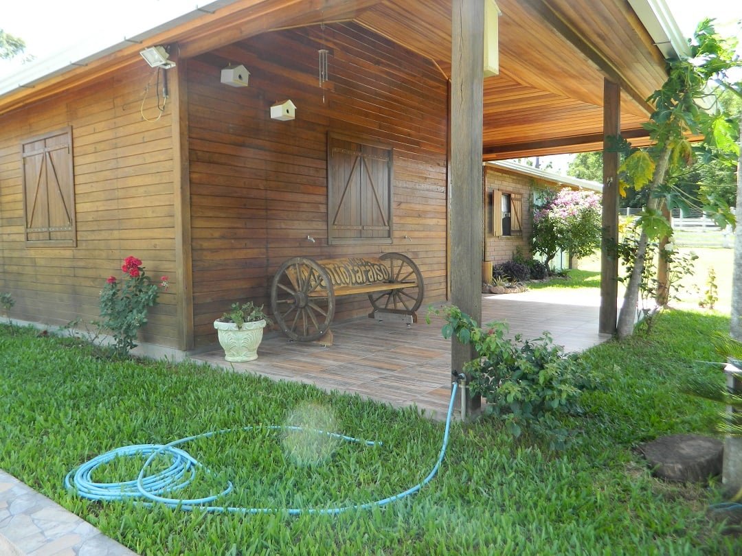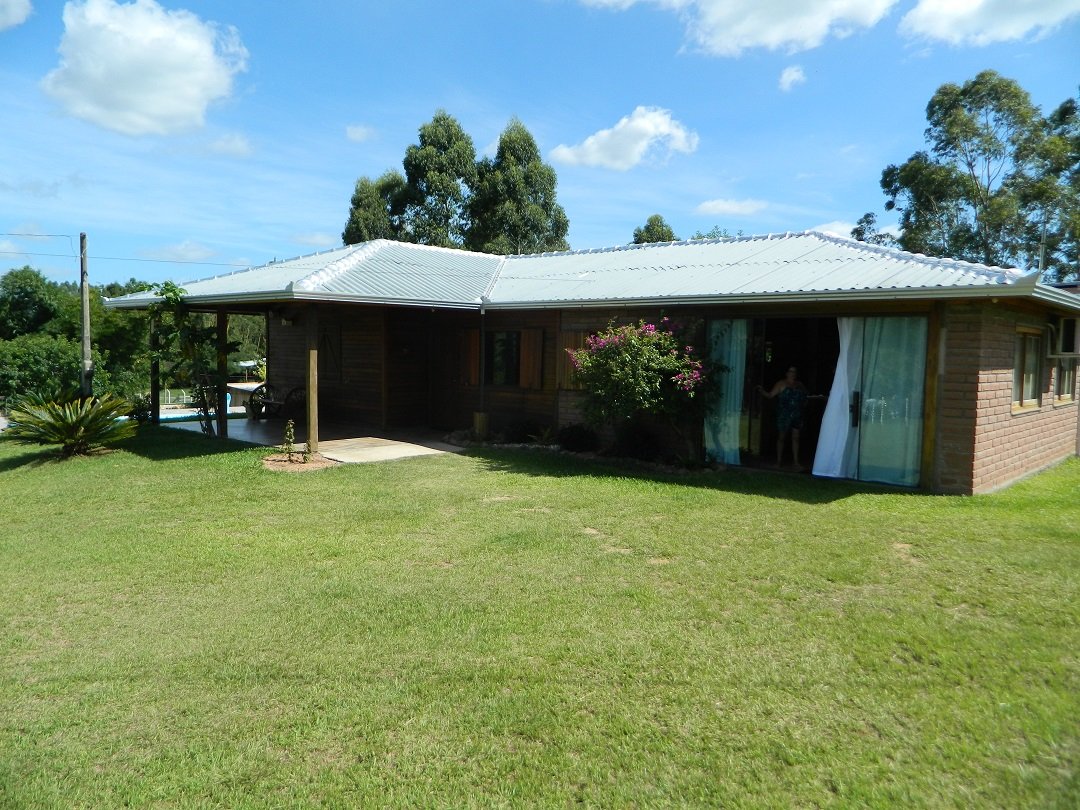 Casa mista em madeira nobre e pedra com 190 m², com 3 dormitórios sendo um suite, banheiro social, piscina 3,5 x 7,0 m, açude 53 x 5 m, galinheiro, canil, galpão pequeno, frutíferas, poço artesiano, local com linda vista.